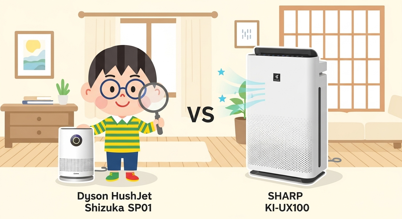 やっほー!ぼく、比較君だよ👓✨ 今日は空気清浄機対決だよ〜! Dyson HushJet shizuka SP01…