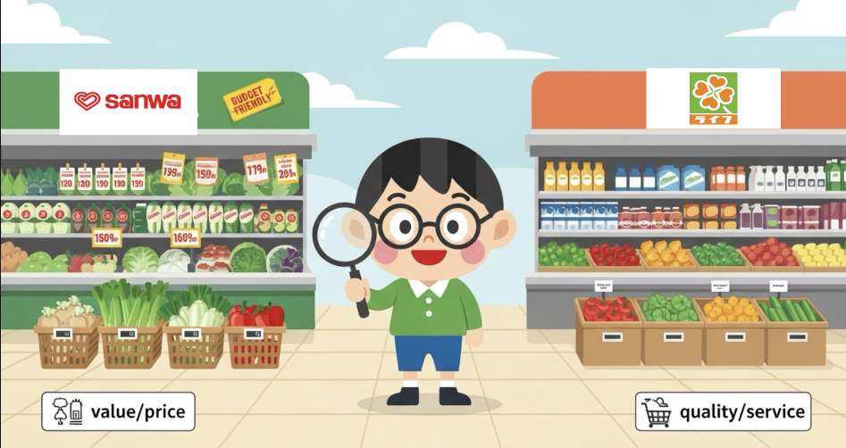 やっほー、比較君だよ👓✨ 今日はスーパーマーケットの対決だよ〜! 今回のテーマは 『スー…